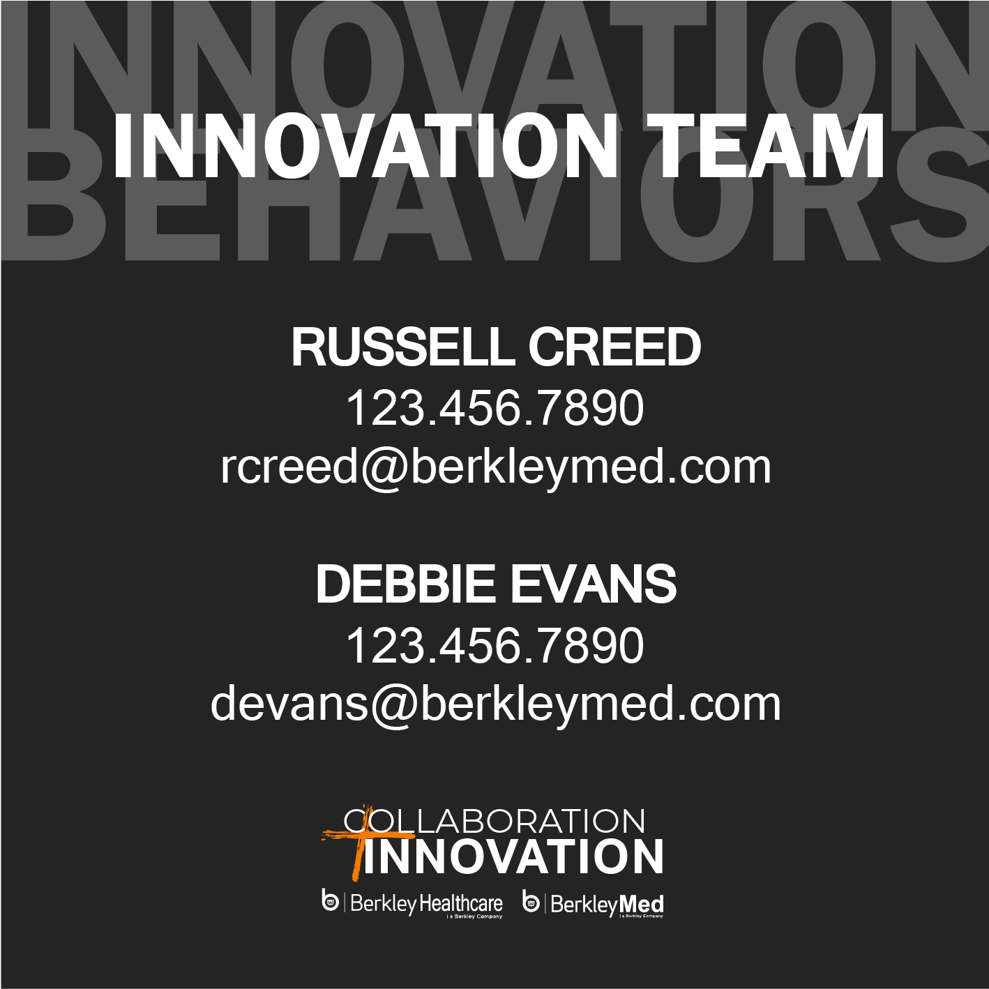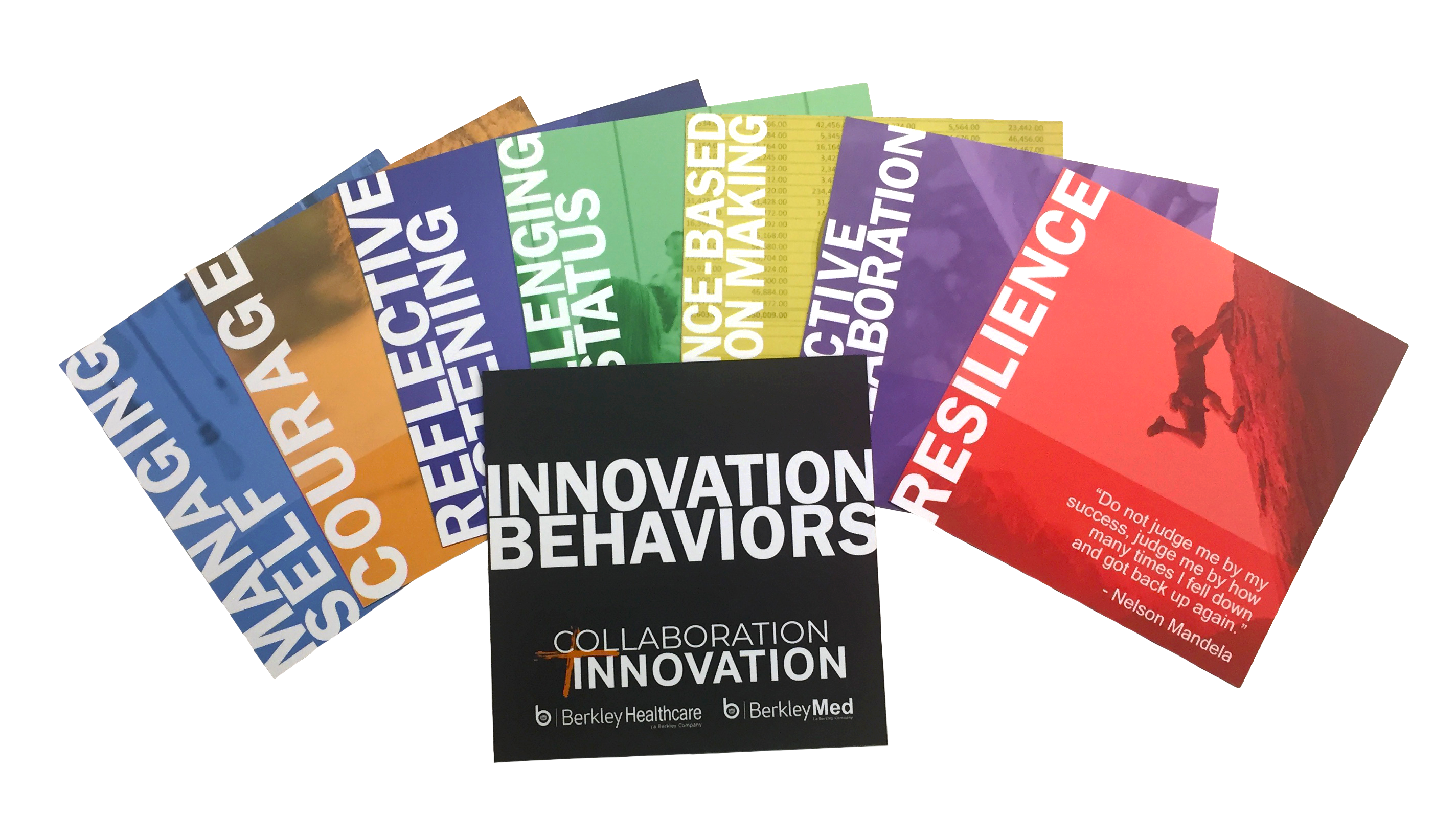 These cards were created for the internal Innovation Team at BerkleyMed, as they wanted an updated set of cards to send out to promote the seven “Innovation Behaviors” that the company encourages. The old designs didn’t draw much interest from most people so the focus of the new designs was to be memorable but also to easily communicate each idea. To achieve this goal I utilized single color designs and bold text to keep the large amount of information as simple and striking as possible.