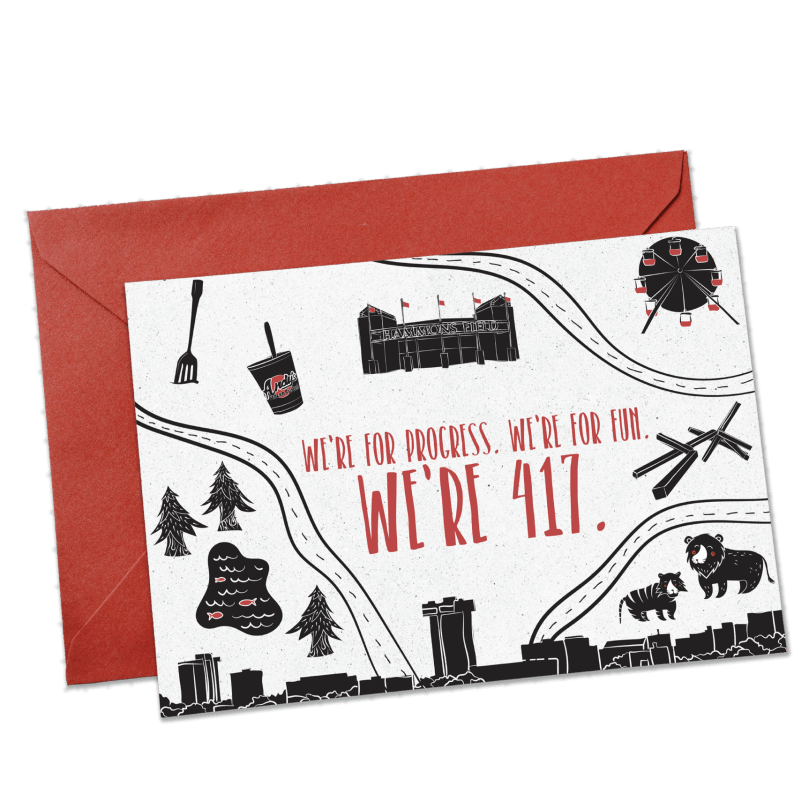 This card was created to be able to send to clients from the Sales and Client Services team at 417 Magazine for any occasion. The fun illustrations on the front take you on a tour of 417-Land and set the fun and lighthearted mood that encompasses 417-Magazine.