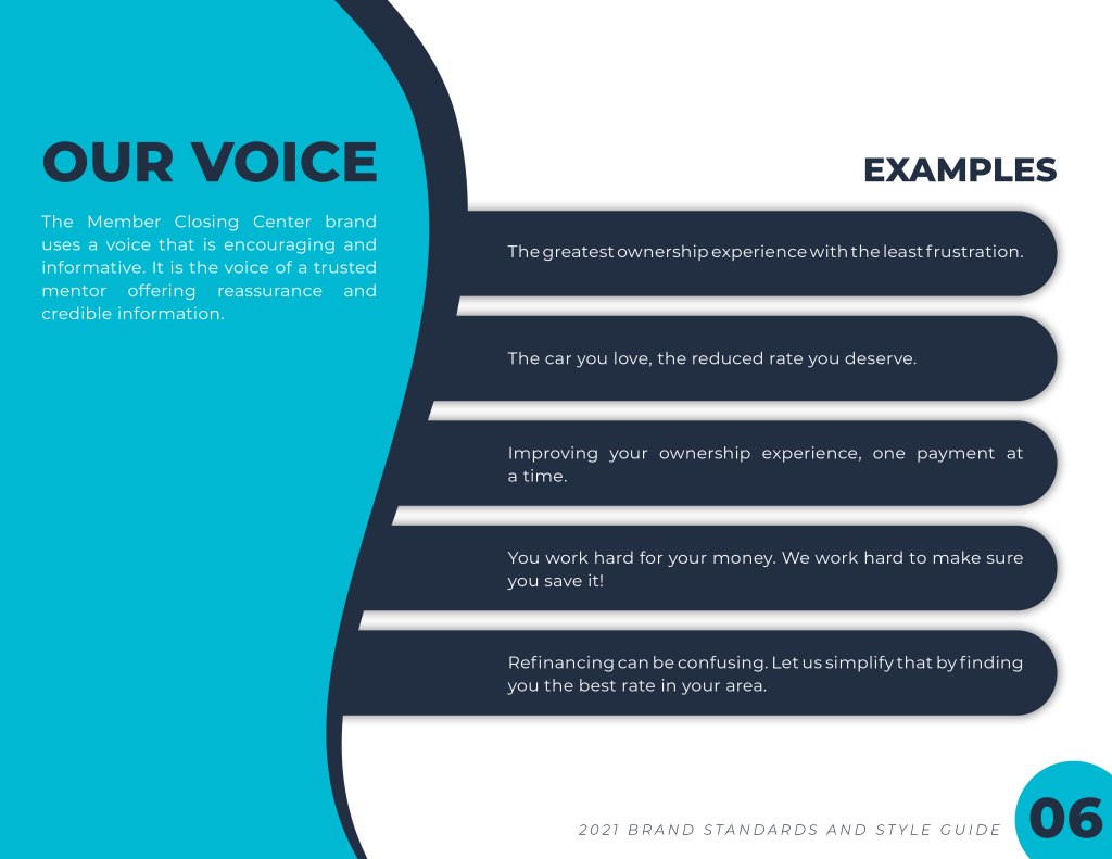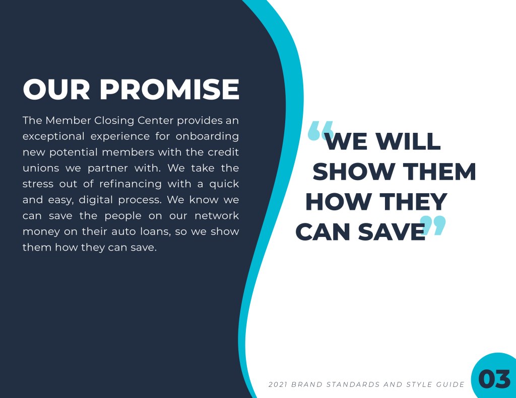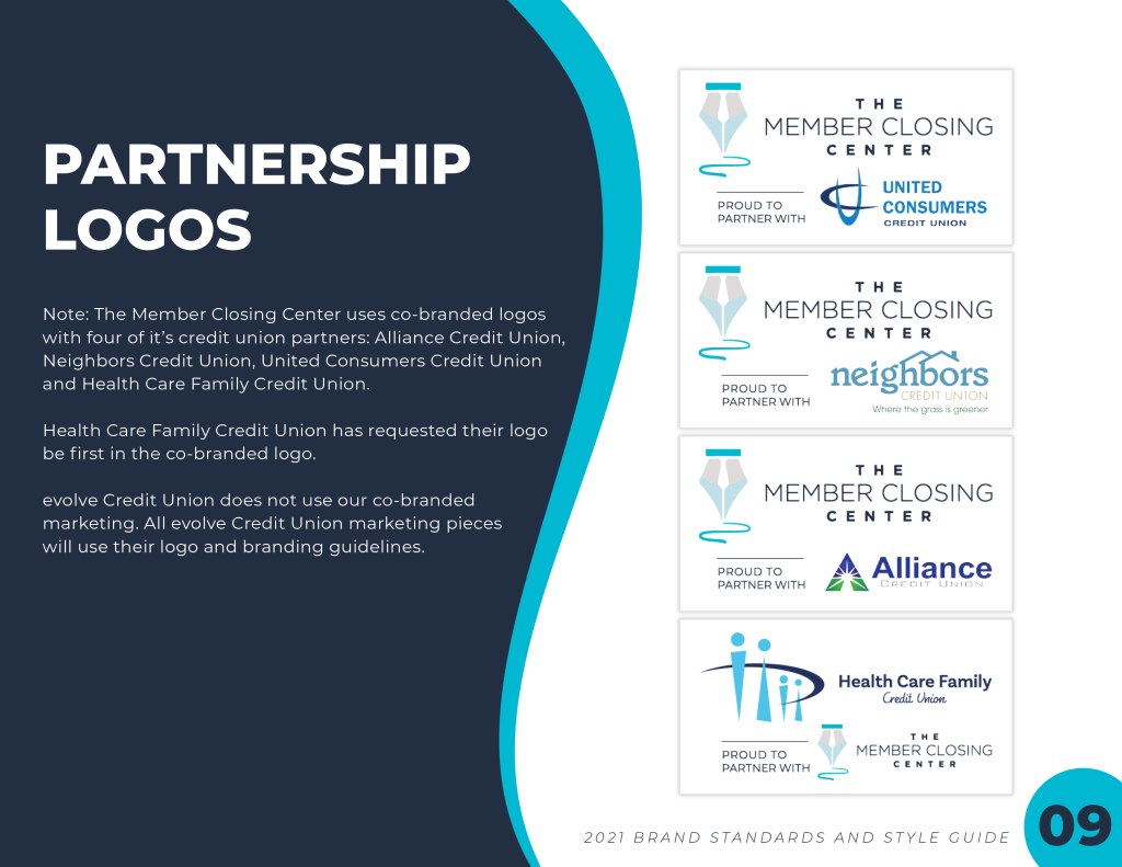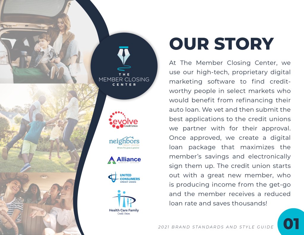 The Member Closing Center has just started their own brand as opposed to branding themselves as the partners they work with. The first step was creating brand standards and styles and consolidating them all in a stylish, yet professional guide.